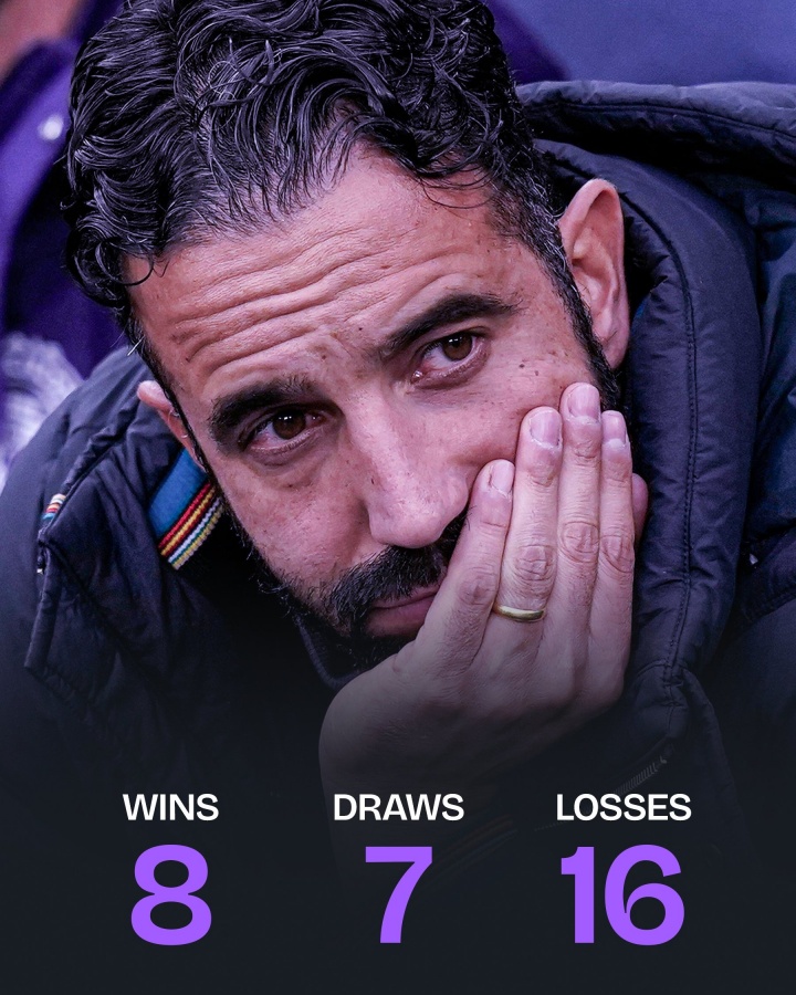 0-3不敌曼城后,阿莫林在英超的战绩变得惨不忍睹,31轮只赢8场,积31分场均1分。有统计显示,除升降级球队外,阿莫林执教期间曼联的积分在英超常驻17队中垫底。