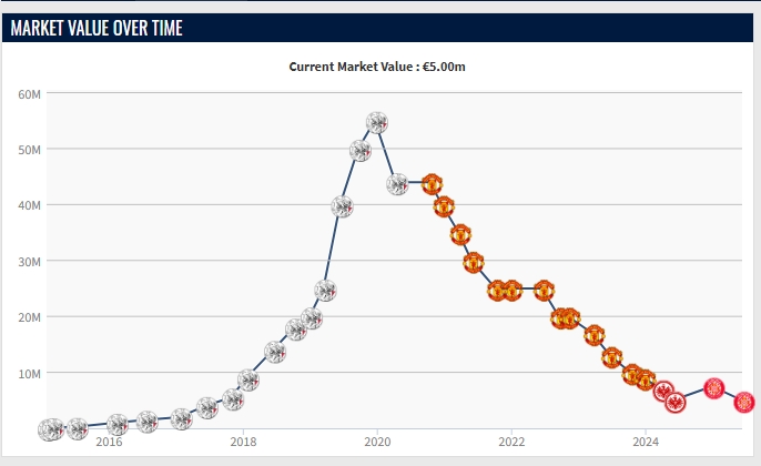 2018-19赛季,他在阿贾克斯57次出场,打进17球并助攻13次,身价飙升至5500万欧元,并入选了2019年金球奖30人候选名单。
